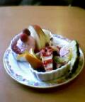 誕生日の時のサービスのデザートです 見ずらいんですが、が!これね、生クリームが苦手な私に生クリームぬきなバージョンを作ってくれたのですwwゼリーを土台にアイスとフルーツ☆いつも優しい店員さんありがとうm(_ _)mこれ見たら、名前知らなくても私の事わかっちゃうねw生クリームぬきで・・・って言うと、断られるお店が多いけど。。。このお店の人達はアタタカク対応してくれます。もち、美味しかったです!!さて、今日は起きたら(`ハ)))...ι(>。ヘ)へっくしょん連発。ゆうべ胃酸が逆流して眠れなかったからかな???今夜はちゃんと寝たいなぁ。