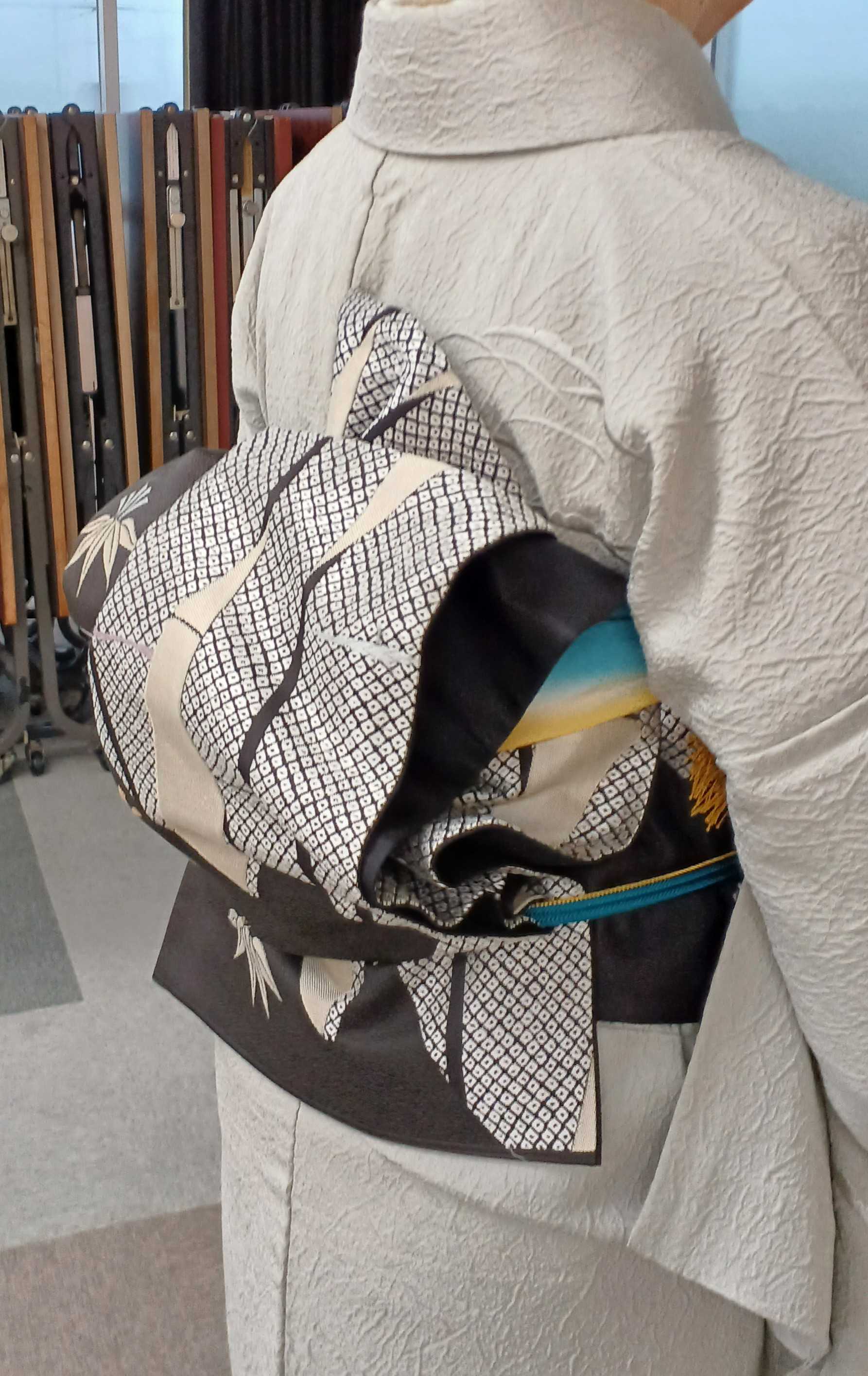 帯結びは、先生のアドバイスで飾りを持ってきました。
