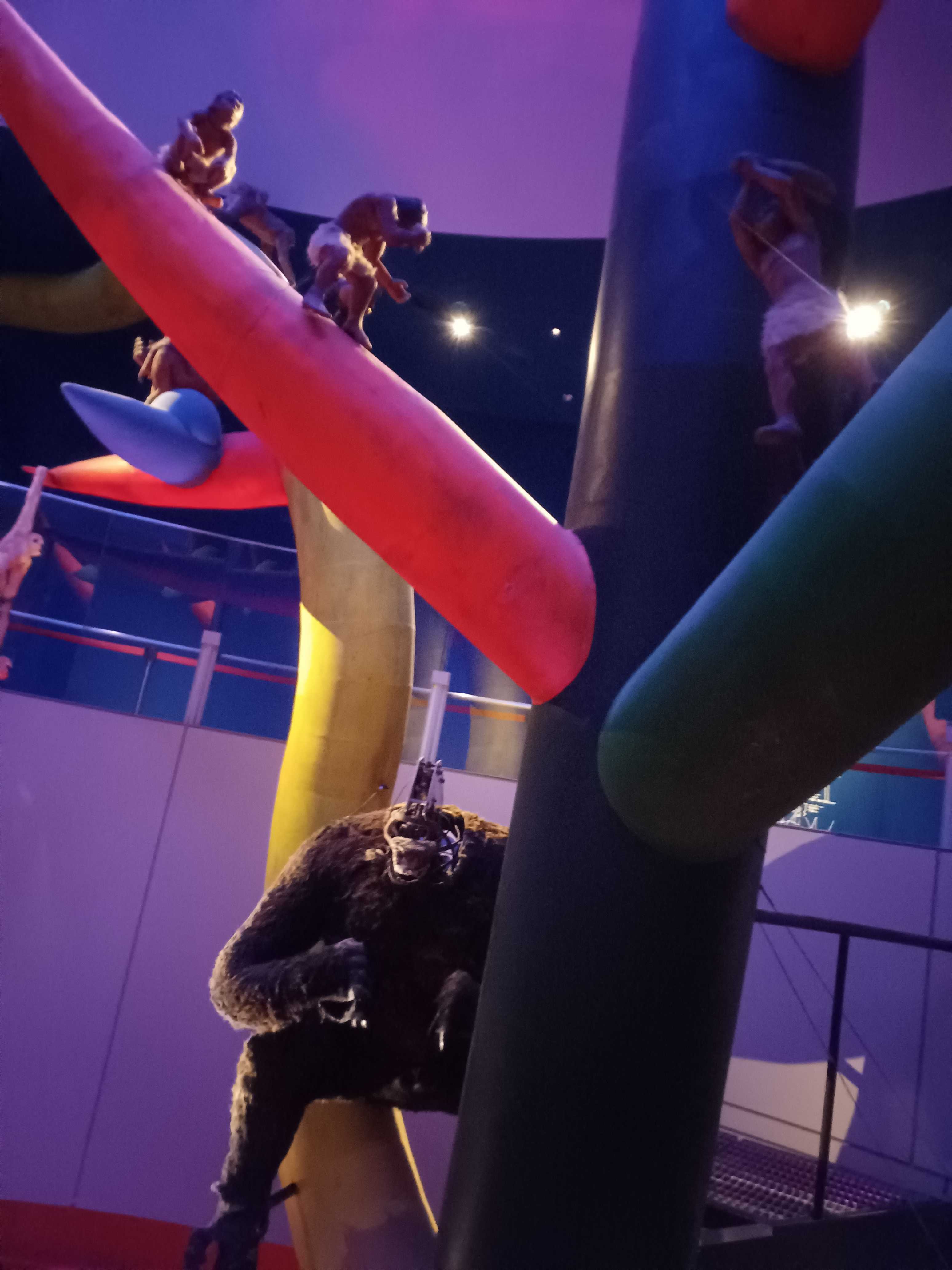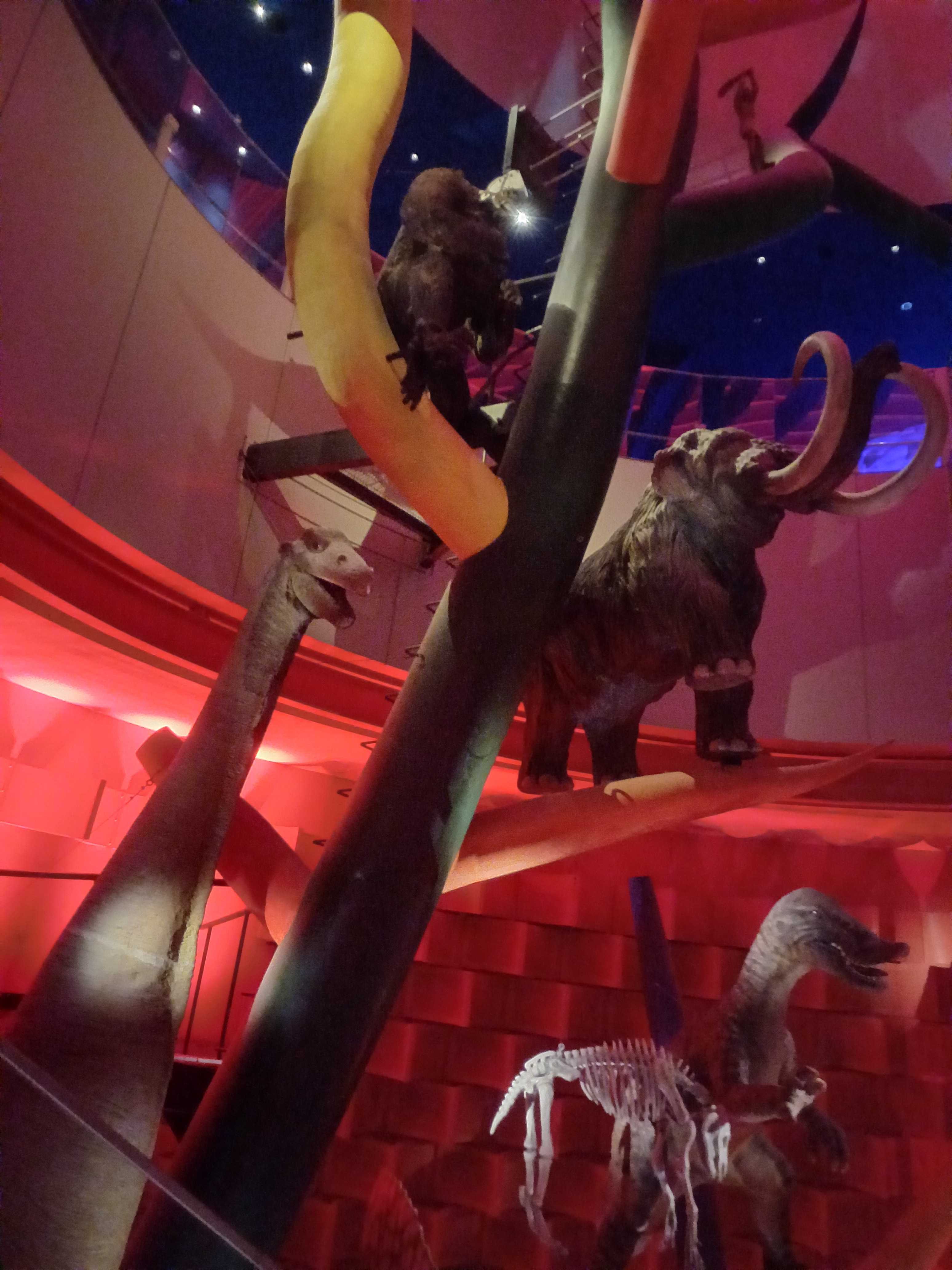 上に上がるにしたがって現代に近づいているんだけど、恐竜の後の時代でゴリラ?に対して人間(原始人)が小さいのは、どちらも今の大きさじゃなかったってことなのかな?