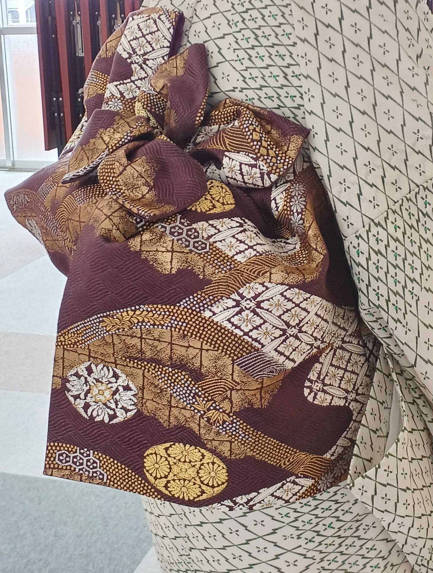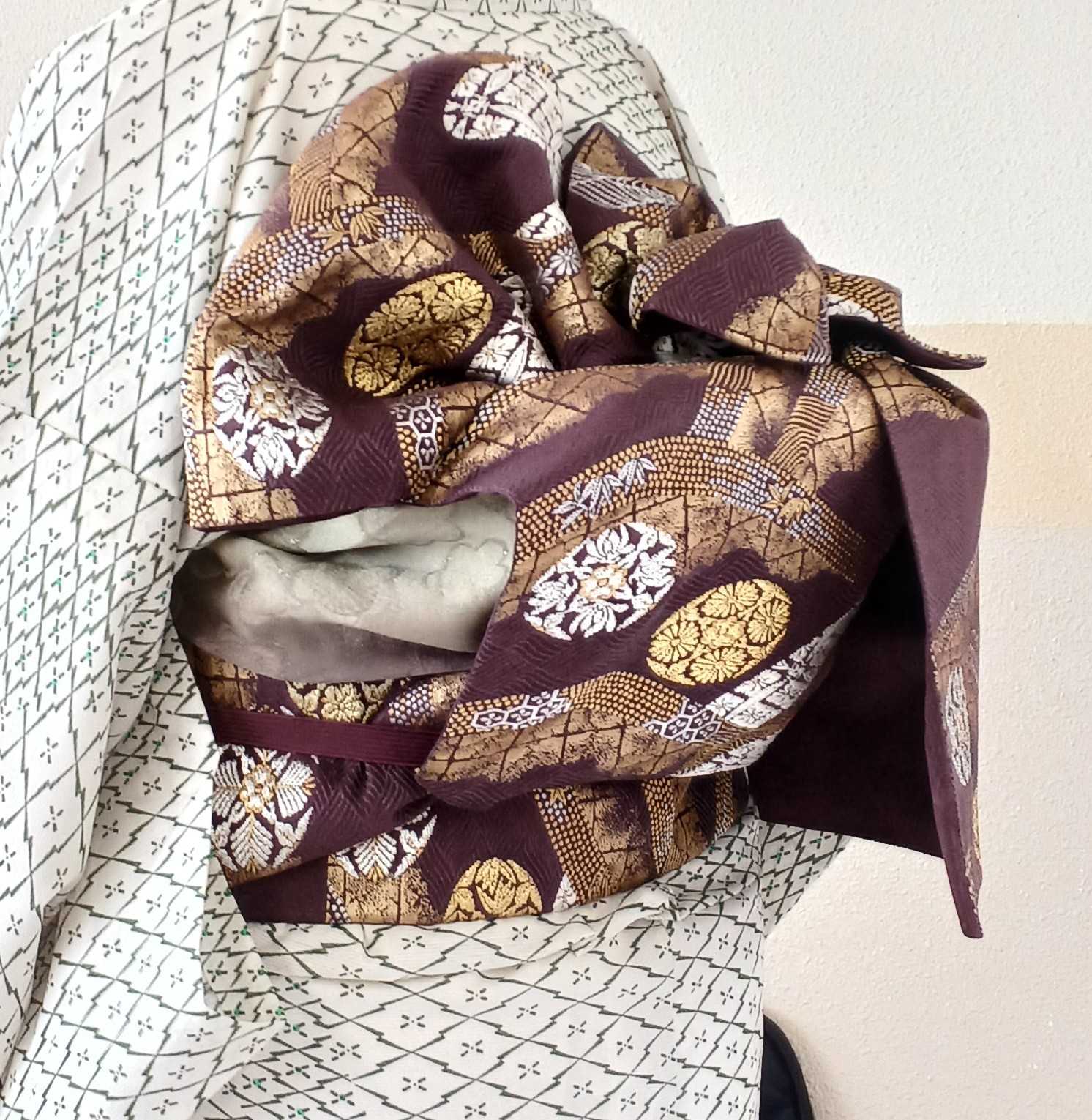 合わせた帯は前回に引き続き頂きものの袋帯、帯締めと帯揚げは先日楽天で買ったものです。