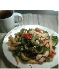ペンネの上に好きな野菜を乗せて、ドレッシングをかけるだけという簡単メニュー♪