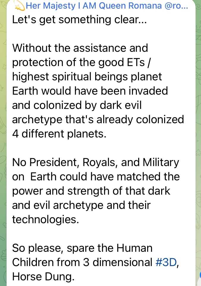 そしてロマーナ女王によると、私たち地球人を助けるために今まで多くの宇宙人?が訪れているみたいですから、決してトランプさんだけではないということなのかな?なんて思います。一体トランプさんはどこの星の人? メラニアさんは? ロマーナ女王は? わからないことだらけで頭がパンクしそうです。😁