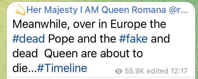 バチカンのフランシス法皇と英国王室のエリザベス女王のことですね。本物はとっくにあの世です。🤣
