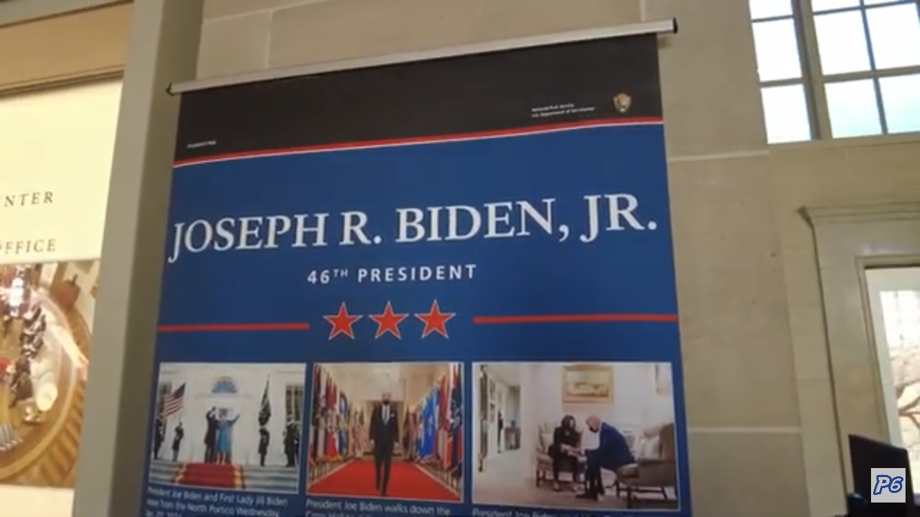 ビジターセンターの中、あるコーナーには歴代の大統領の顔写真とその下に任期が書かれているのです。大きなパネルには、45代大統領までの写真が並んでいます。45代はトランプ大統領です。あれ?バイデンさんは?