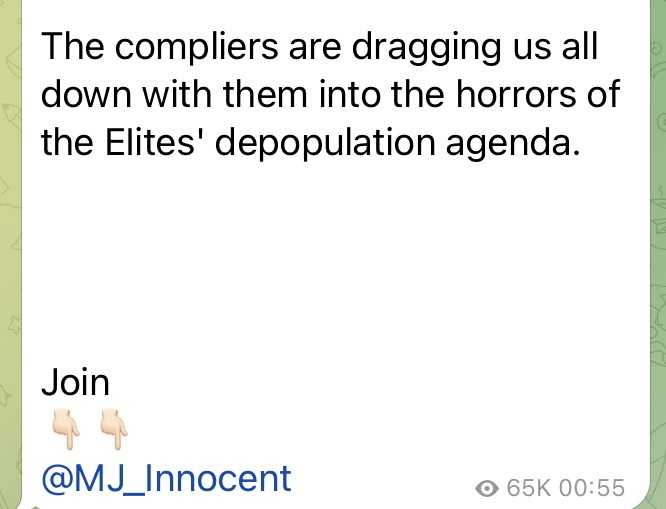 従い続ける人々が僕たち皆をエリートたちの人口削減アジェンダの恐怖に引きずり込んでいるんだ。