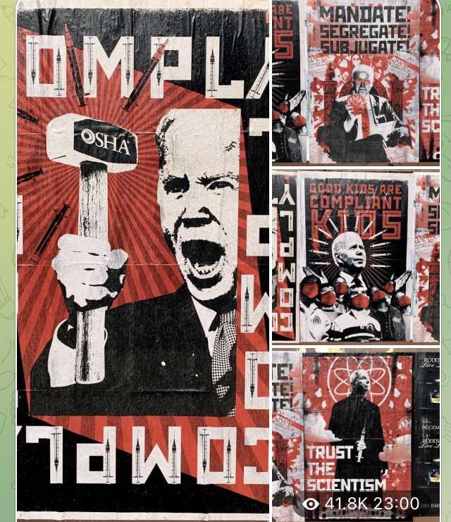 *ワシントンDCで、ソビエト時代を真似したポスターが出てきました。バイデンとファウチが、”我々に従え” と言っています。👇