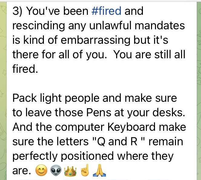 3)あなた方はお役御免です、違法な義務化を撤回するのは恥ずかしいことですがそうすべきです。あなた方全員は既に首になっているのですよ。