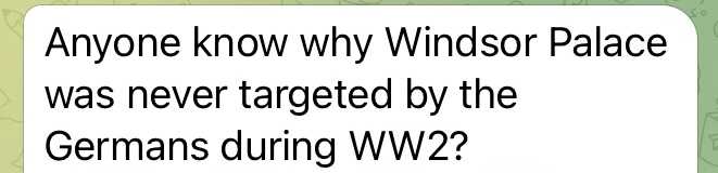 第2次世界大戦の時、ウインザー宮殿がドイツ軍によって決して攻撃されなかったのは何故?誰か知っていますか?