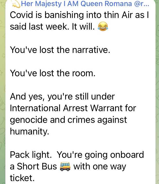 2年間も一生懸命に政府の言うことを聞いてきた人々にとって到底信じられることではないと思いますが、真実は一つ、最後に勝つのは真実です。あの政治家も、あの芸能人も、あの専門家も... もうすぐ正体が暴露されます。ロマーナ女王が仰るように、今からDetachして...準備はいいですか?😁