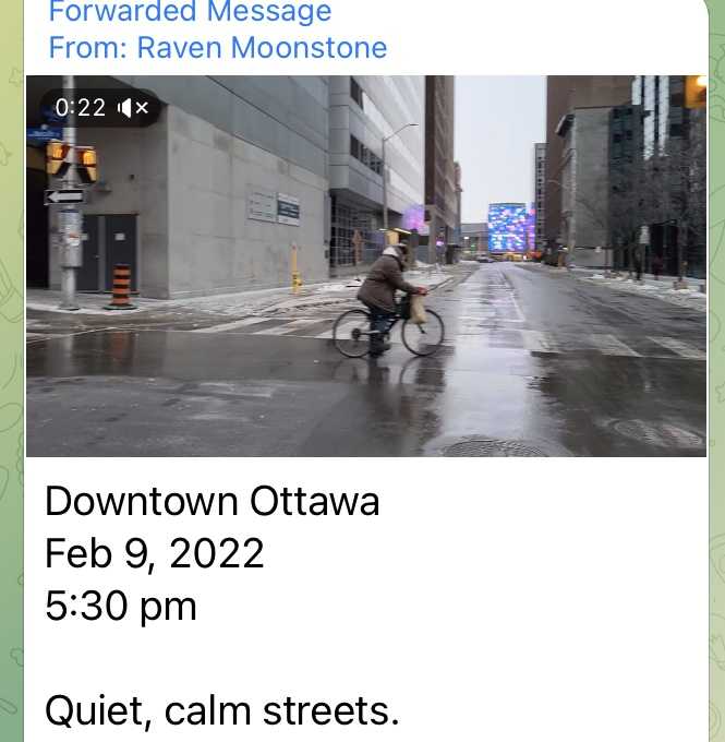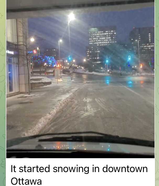 メディアがオタワで暴動や警察の取り締まりが厳しくなっていると伝えているかも知れませんが、ロマーナ女王から、今のオタワの様子の画像が届きました。👇 雪が降ってきたそうですよ。
