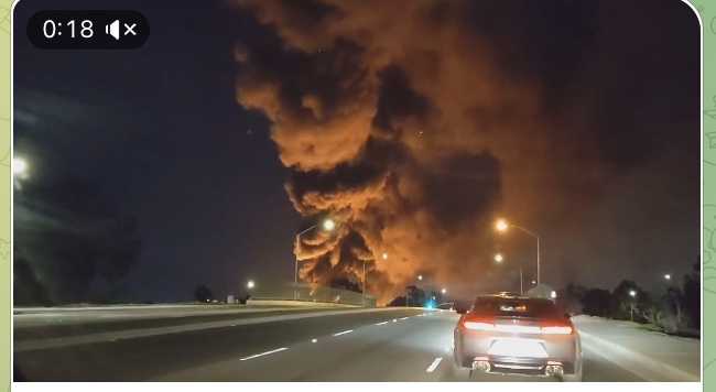 *カリフォルニア、工業地帯オレンジシティーで大きな火災があった。マットレス製造工場と言われている。(恐竜の煙?)👇