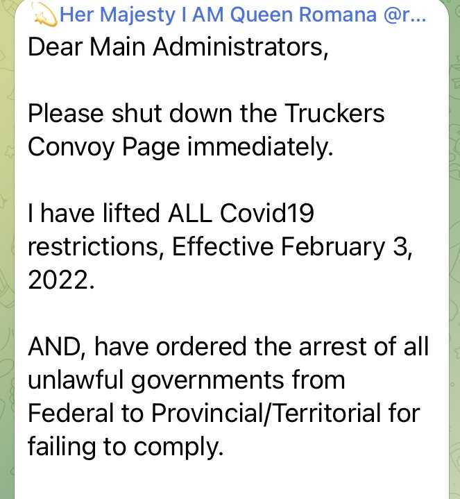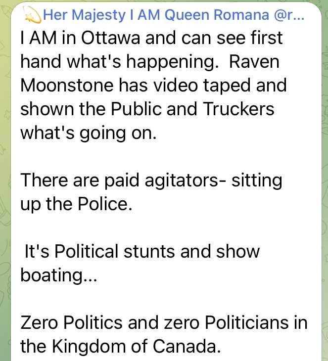 実際に今オタワがどういう状況なのか、一番よく知ってらっしゃるのはロマーナ女王ですから、昨日から今日の投稿をいくつかご紹介します。