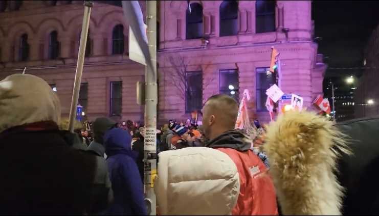 カナダは寒いそうです。夜はマイナス20度だとか、そんな中ロマーナ女王はオタワの通りを偵察?しにお出かけされ、人々の様子などをビデオに収めています。トラックは数台しかなく、周りの広場にはコーポレーションフラッグ(紅白フラッグ)を持った人々が集まっていましたが、特に暴動のようなことは起きてはいませんし、人々はフリーダム、フリーダムと口を揃えていました。