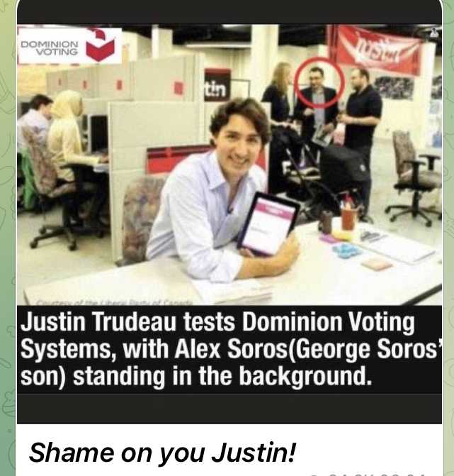 ジャスティントルドーがドミニオン投票システムをテストした、後ろに映っているのはジョージ ソロスの息子、アレックス ソロス