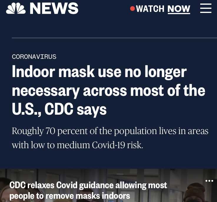 アメリカ全土で室内でのマスク着用はもう必要ありません、とCDCが発表しました。