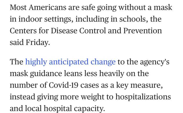 センターのマスクガイダンス変更は大きく期待されていましたが、Covid対策としてCovid-19発症数によるものではなく、病院の患者収容可能数と入院を考慮した理由によるものです。