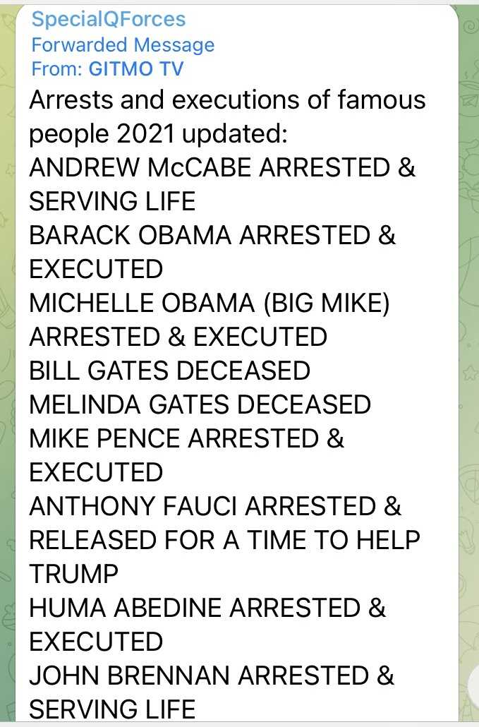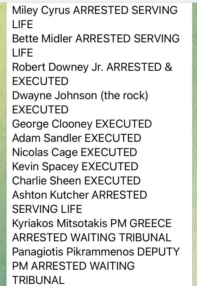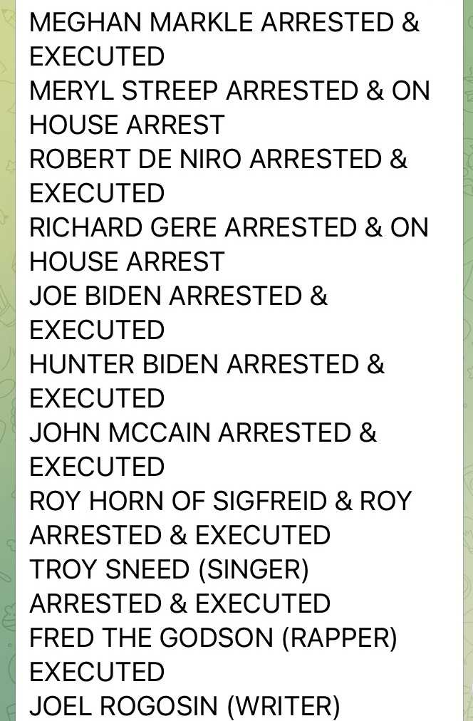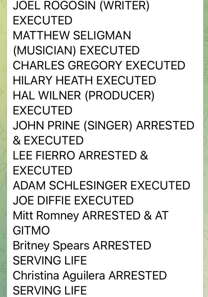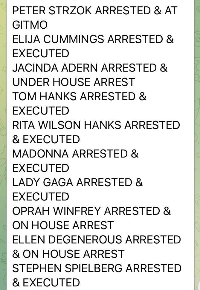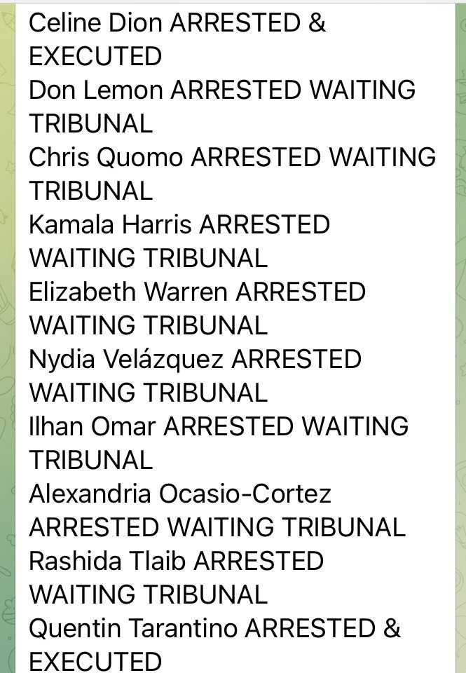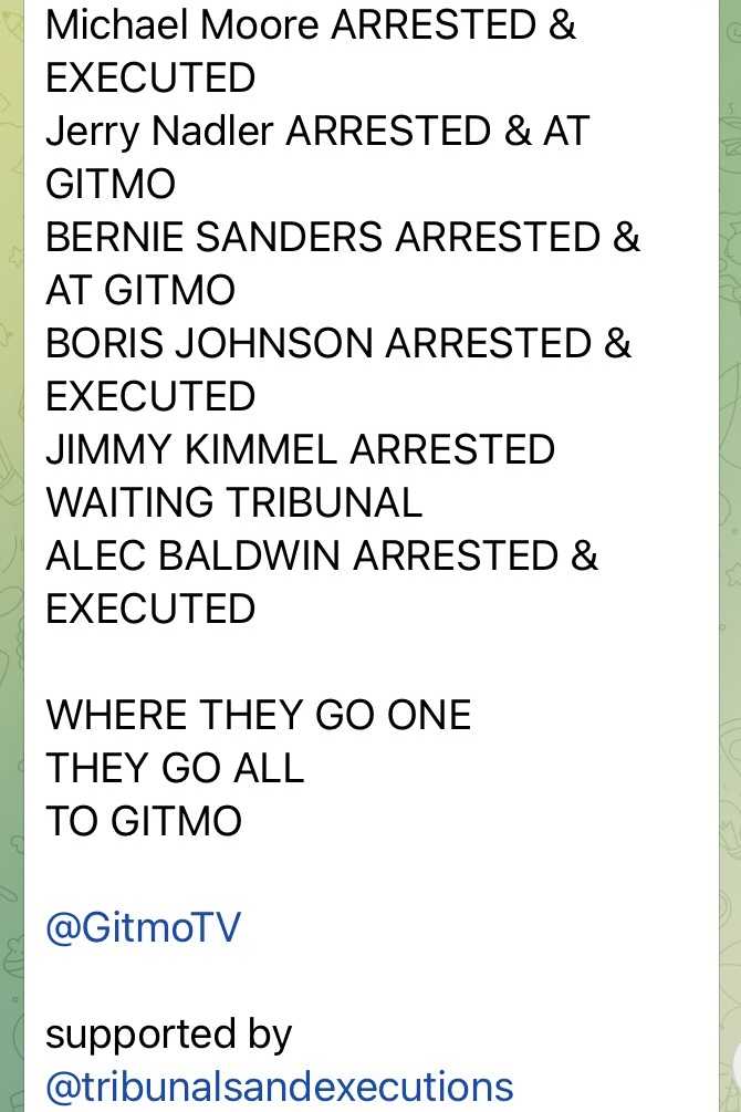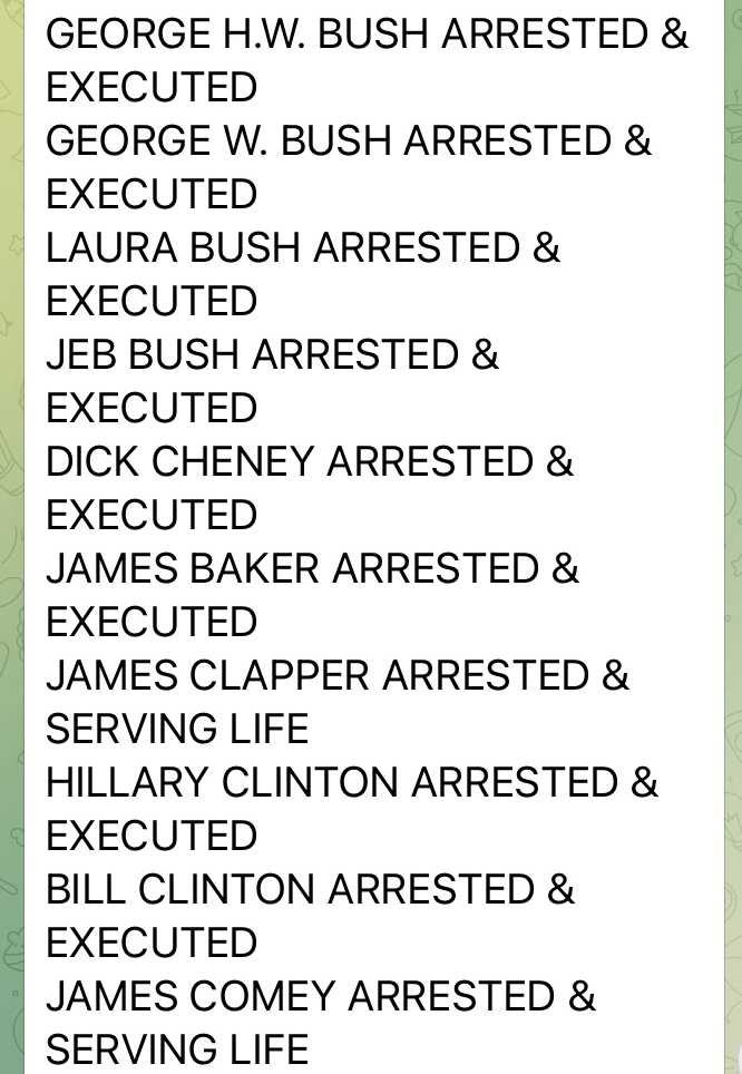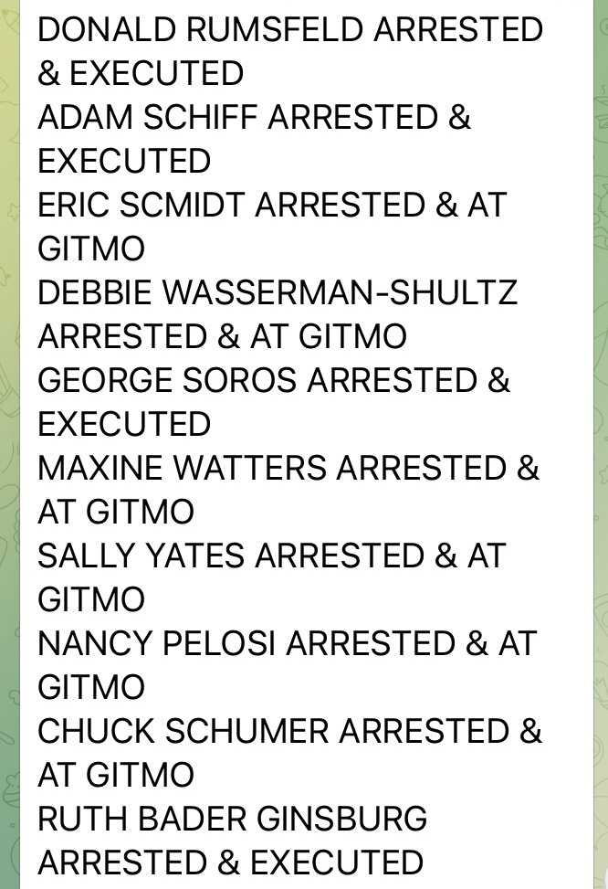 先日今度はテレグラムGITMO TVというチャンネルからそのリストが出て来ました。EBS(緊急放送)があれば、ビデオに撮られた軍事裁判や処刑の様子が出てくると思っていたのですが、今はこのようにデクラスが進んでいます。