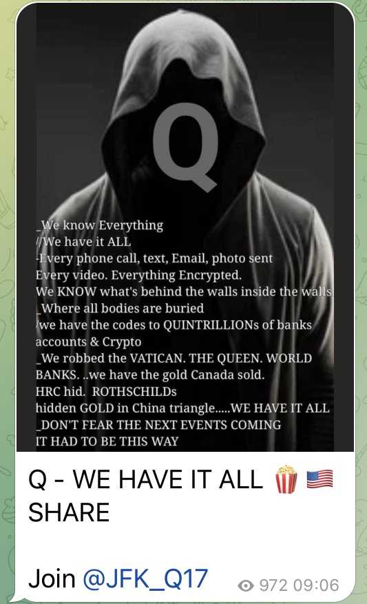 我々は、バチカンを没収した、クイーンも、世界銀行も。カナダが売ったゴールドも持っている。