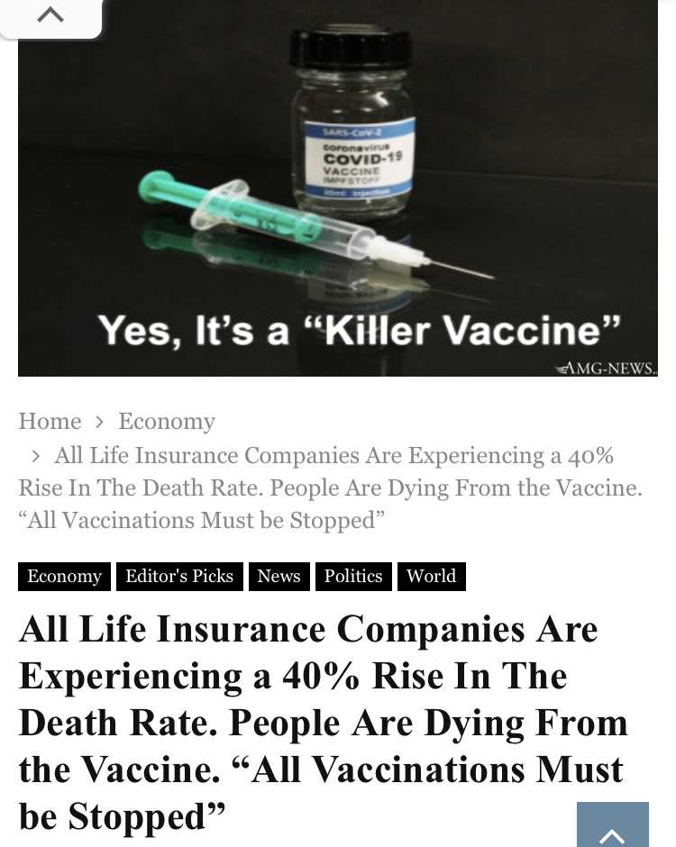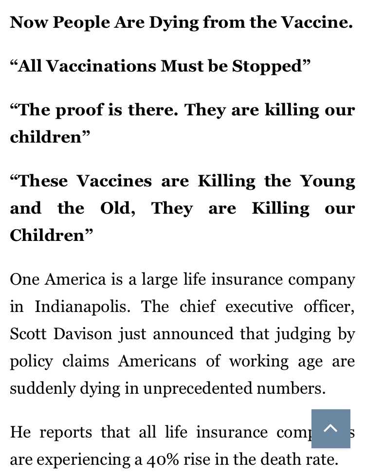 全ての生命保険会社が死亡率が40%上がっていると言っている。人々がワクチン接種をして亡くなっている。”全てのワクチン接種は中止されなければならない”