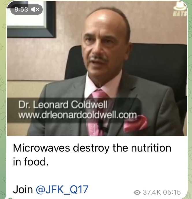 お花のポットを二つ用意し、一つにはただの水を、もう一つには電子レンジ水を、すると電子レンジ水を与えた方のお花が枯れてしまったこと。食べ物を電子レンジにかけると栄養価がなくなるということ。栄養価のない食べ物を食べ続けるから膵臓が疲弊して糖尿病になるということ。