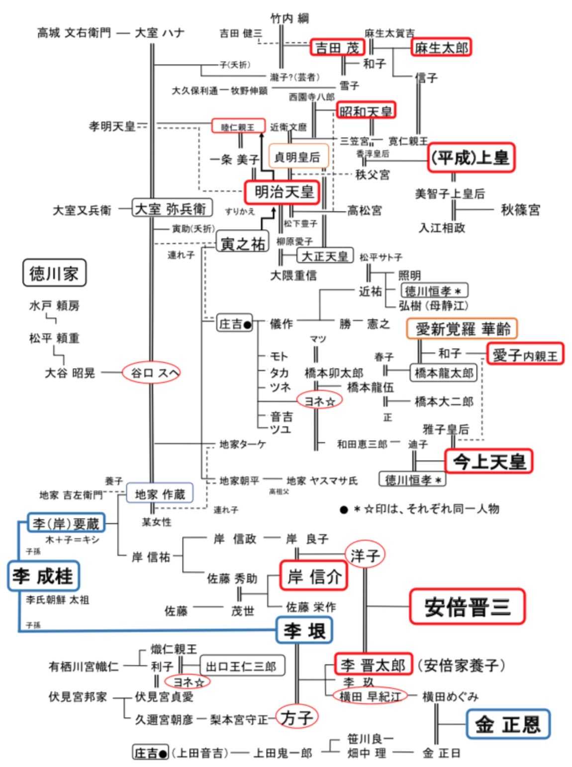 長い民族の歴史を理解する上で、数字だけで一概に区別できることではありませんが、私たち日本人が、日本人のルーツ、歴史、文化を学ぶ時の情報の一つとして知っておいた方が良いと思いますので、下に朝鮮王朝李家の家系図を載せます。ネット上はこのようなデクラス情報に溢れています。皆さんも是非ご自分の目で確かめてみてくださいね。