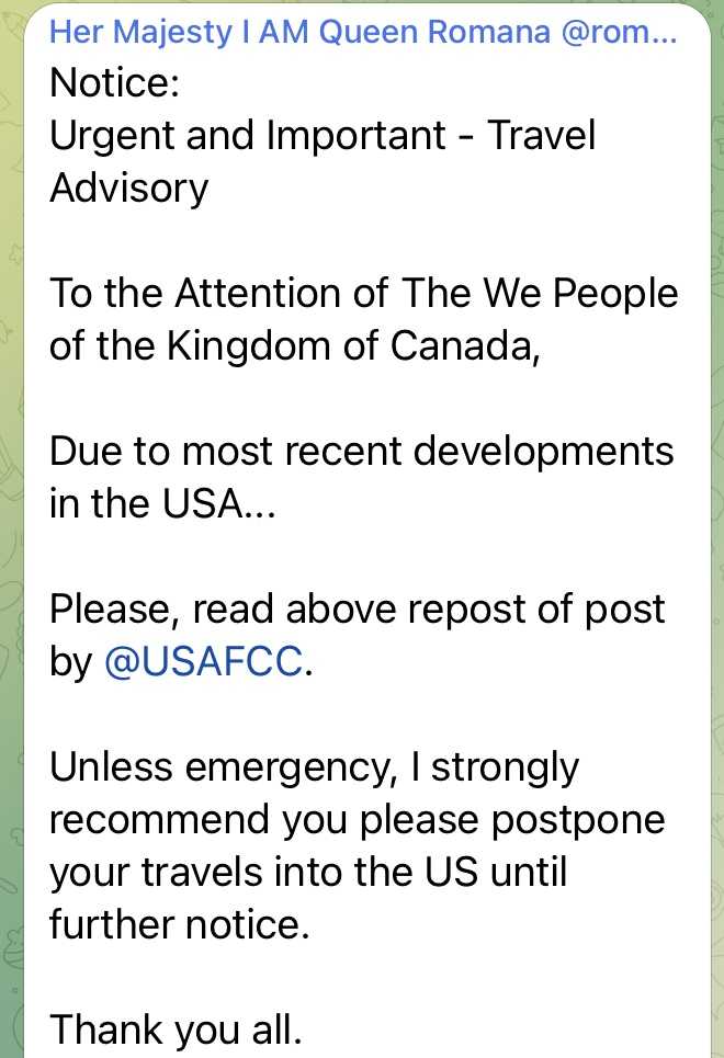 こちらもロマーナ女王から(USAFCCから転送メッセージ)