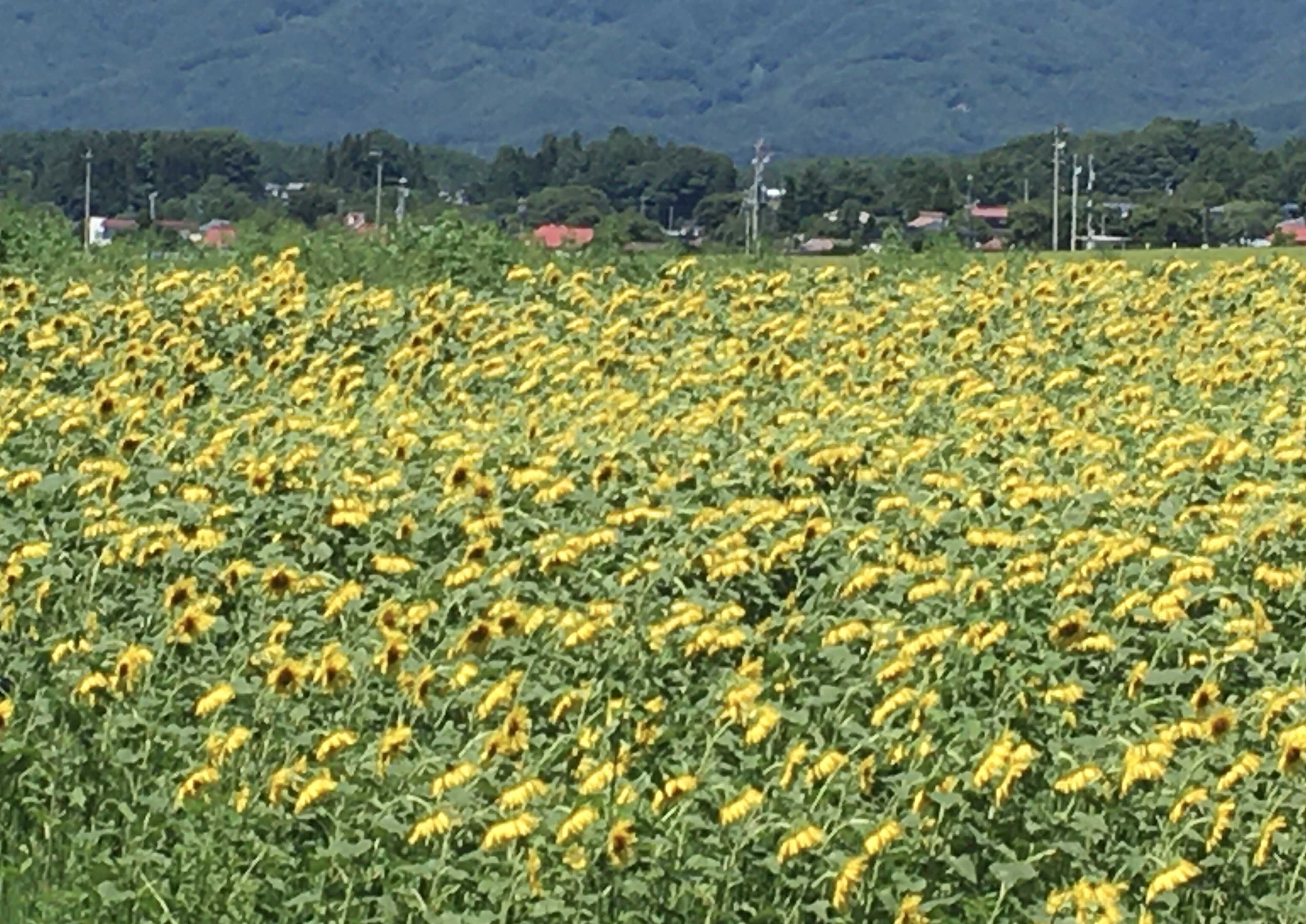 今年からエコーラインにひまわり畑が出現しました。一斉に太陽に顔を向けて咲くひまわりは元気な夏の象徴、大好きな人も多いのではないでしょうか。私にとってひまわり(種)は小鳥たちのご飯です。🤣
