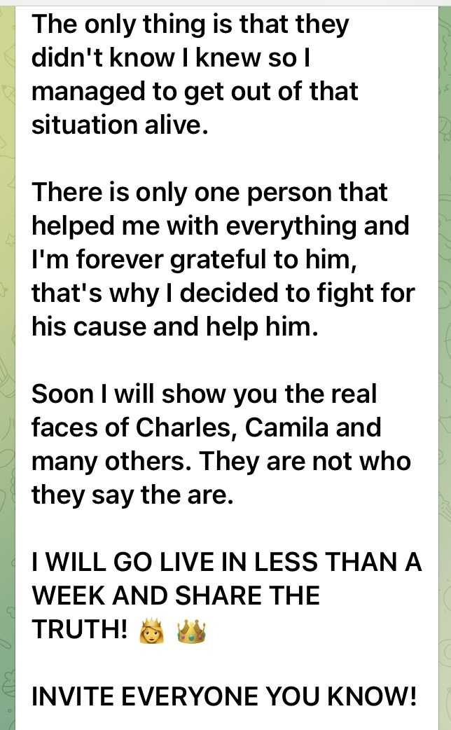 もうすぐ私は、チャールズ、カミラ他の本当の姿を皆さんにお見せします。私たちが見ているのは彼らの本当の姿ではありません。