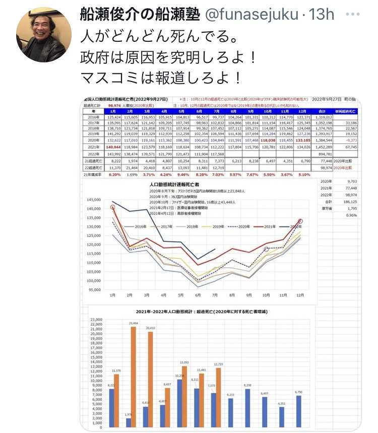 このようなことは自然界では起きないのです。ワクチン接種がなければ天寿を全うできた人々です。仕方がない、基礎疾患があるから、高齢だから、副作用が出て運が悪かったと考えるとしたら、それは間違いです。