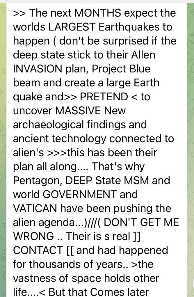 来月(10月)には世界で最も大きな地震が予定されている(もしDS側が宇宙人の侵入計画に固執していても驚かないで、プロジェクトブルービームと大きな地震、そして新しい考古学の発見と宇宙人に繋がる古代にあった技術>>>これは彼らの計画だった.... それでペンタゴン、ディープステートMSM、そして世界の政府とバチカンたちが宇宙人のアジェンダを推していた...)///誤解しないで、彼らのは本物だ。