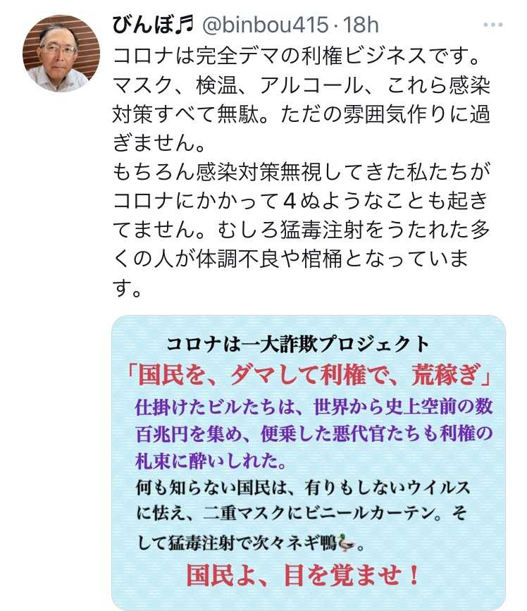 皆さんの周りでもこのようなことが起き始めているのではないでしょうか? どんなにSNSでワクチンの恐ろしさを繰り返しても、どんなに打たないでと説得を試みても、自分の身に降りかからないと人は理解できないものなんだと、改めて感じました。