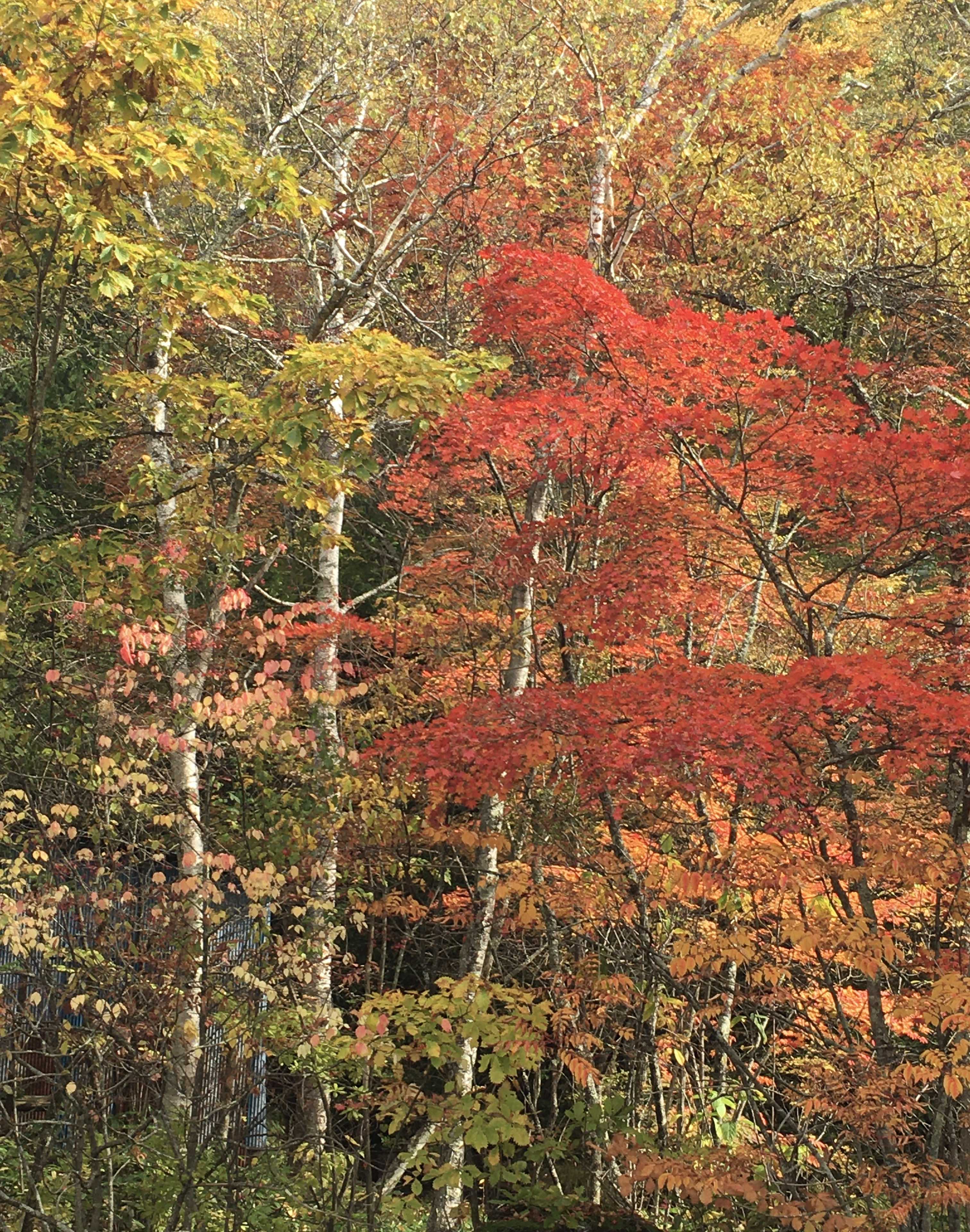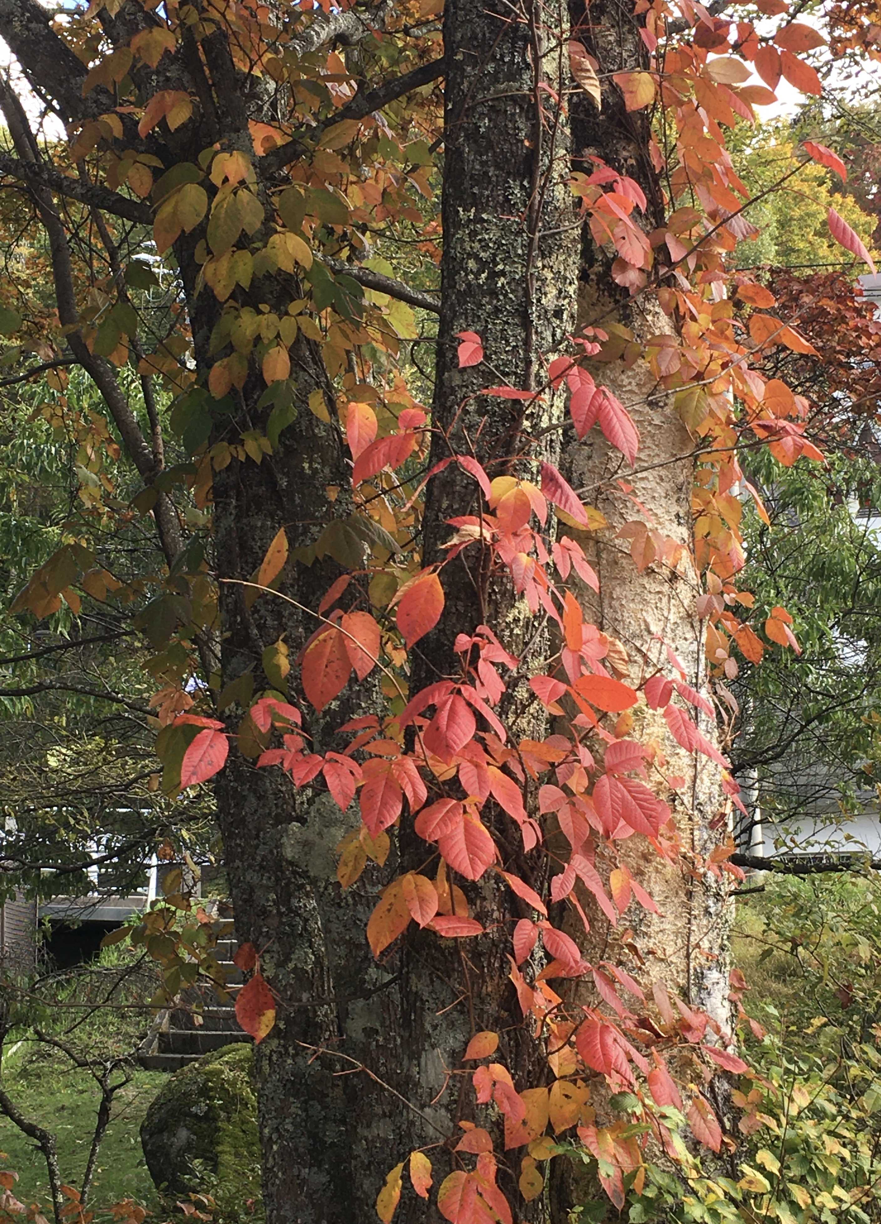 木道付近のツタの紅葉(このツタはカラマツなどの大木が好きなようです)