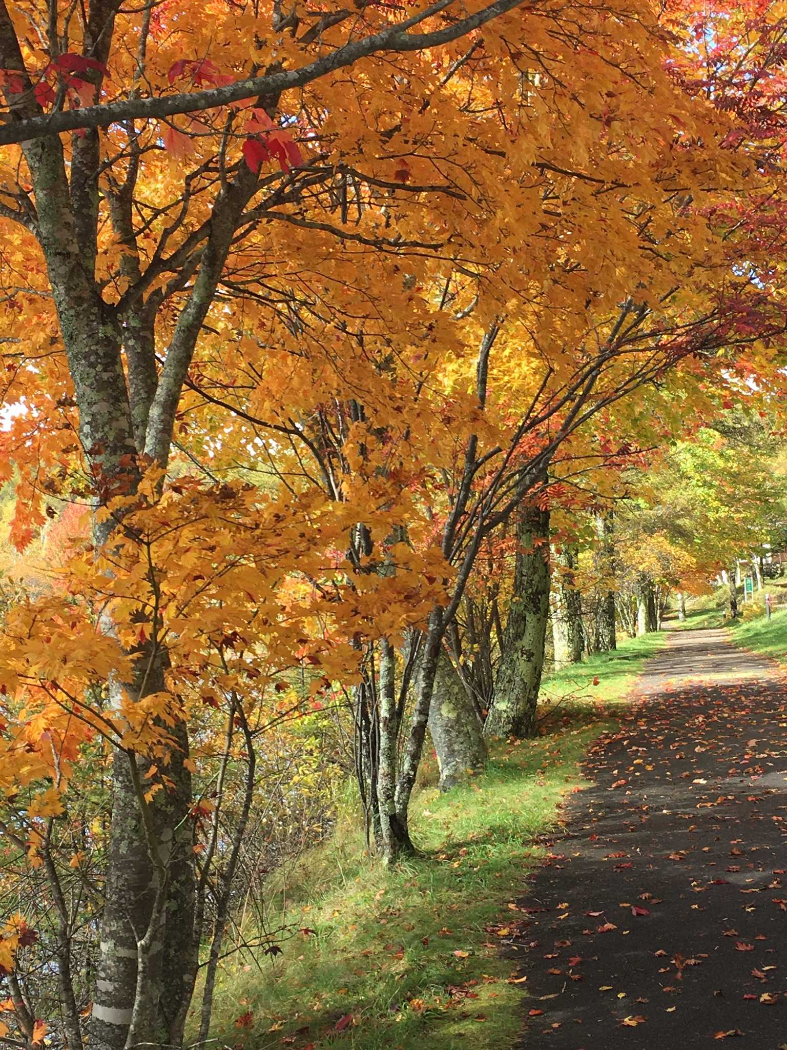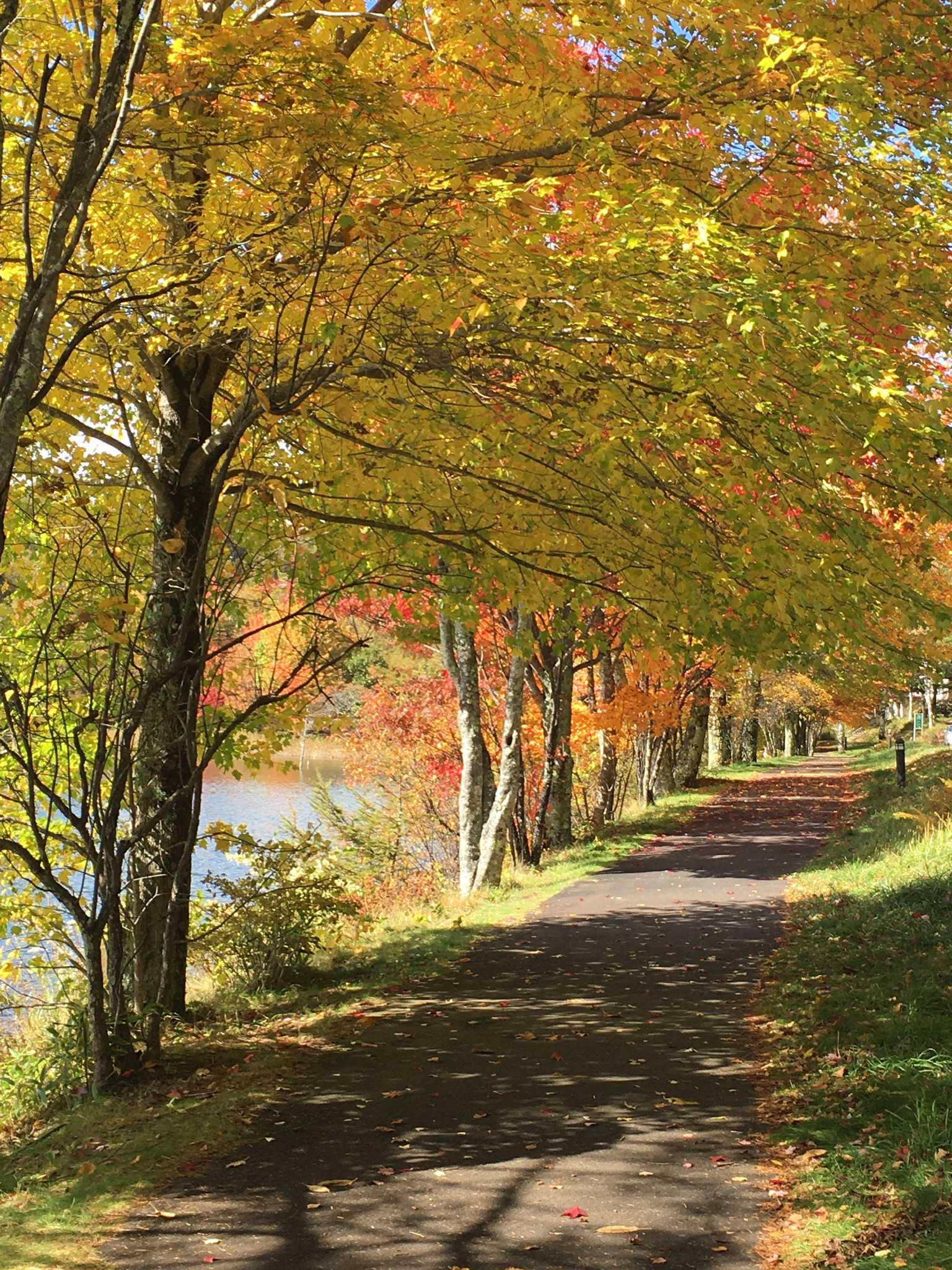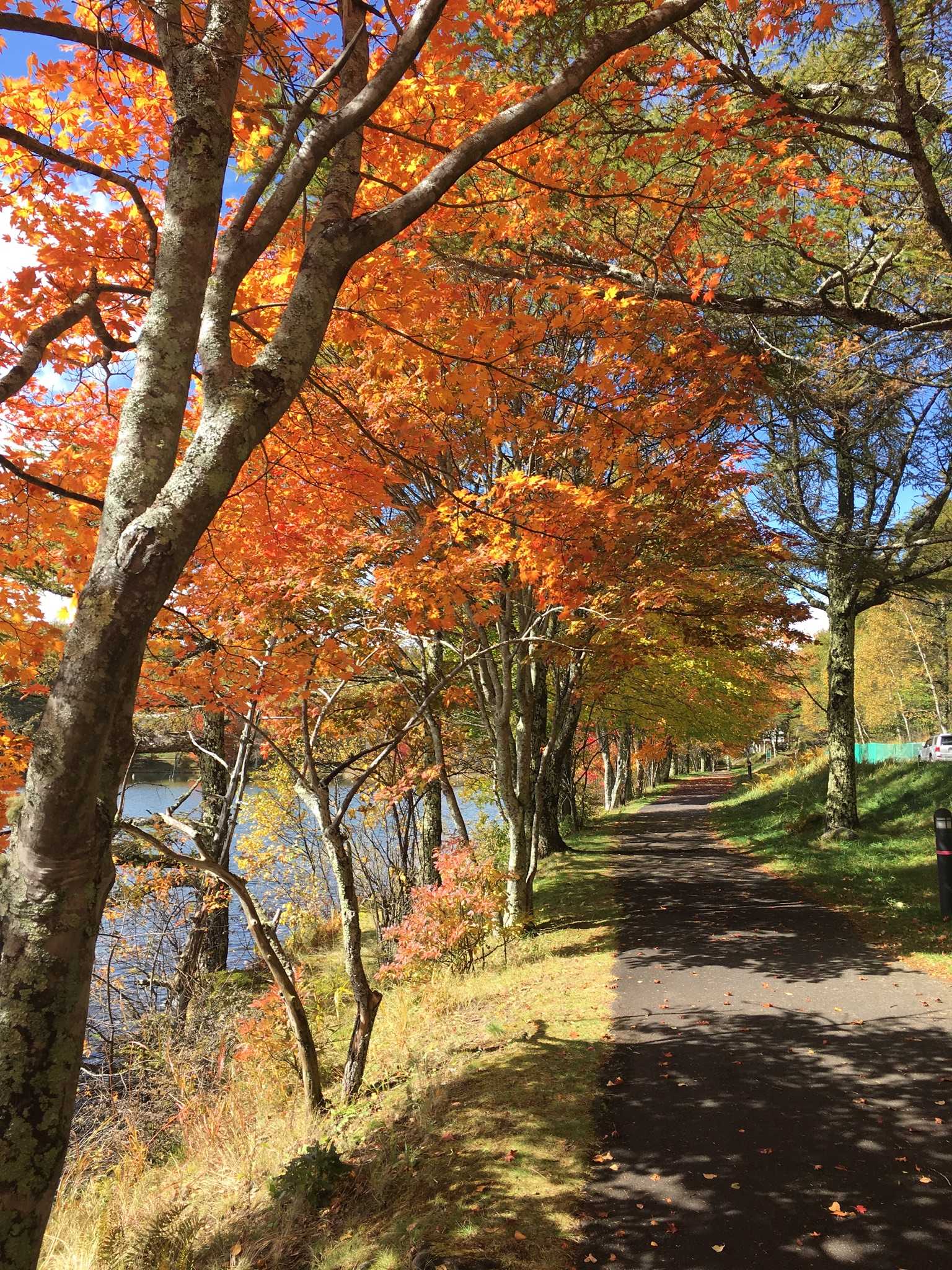 蓼科湖の紅葉、まだまだ葉っぱが緑の木々が多かったですが、日当たりの良い場所では紅葉が進んでいました。