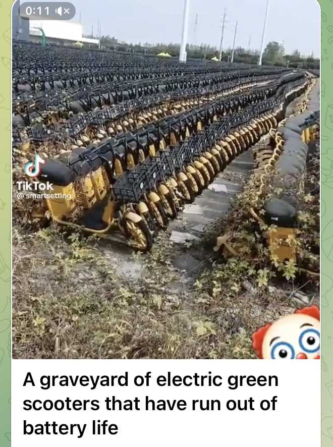 バッテリーの寿命が尽きた電気スクーターの墓場だ。