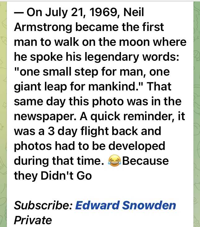 アームストロングの名言を私の解釈にするとこうなります👉 "一人の人間にとって小さな一歩だが、人間もどきにとっては大きな飛躍だ” と。つまりこれでNASAの捏造が開始されたのです。