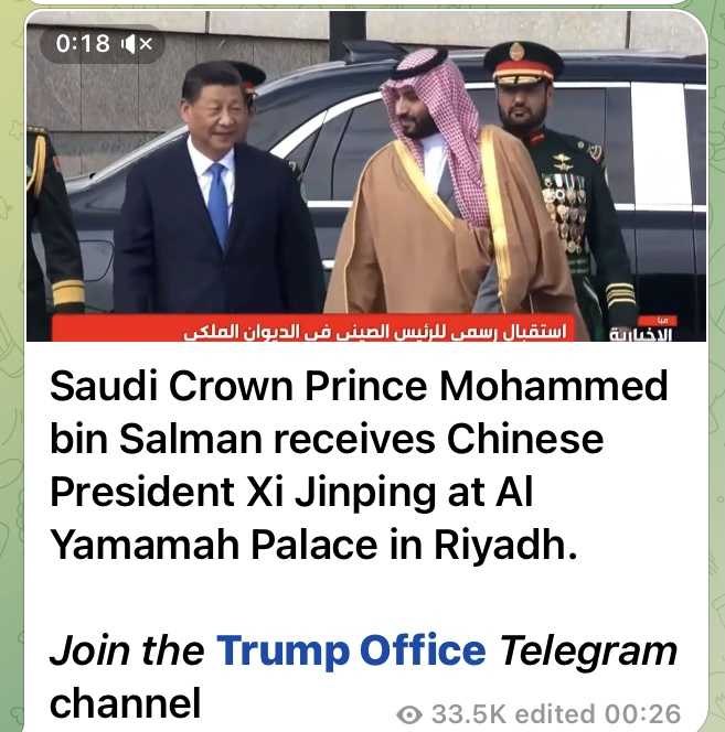 サウジの王子、モハメド ビン サルマンが、リヤドにあるAI Yamamah 宮殿で中国の習近平の訪問を受けた。