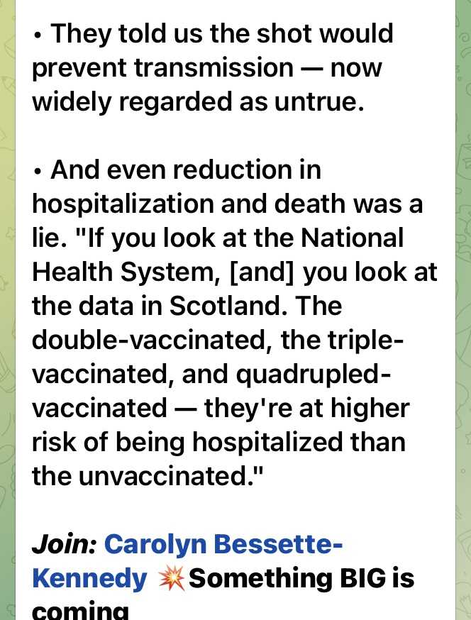 * その上、入院患者数や死亡者数の減少も嘘だった。”あなたが、英国の医療制度とスコットランドのデータを見ればわかることだが、接種者は非接種者よりも2倍、3倍、4倍も高い入院リスクがあるのだ。”