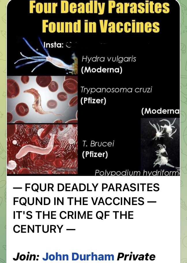 ー 4つの死にいたる寄生虫がワクチンの中に見つかった。ー これは世紀の犯罪だ。ー