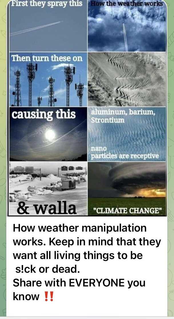 天候操作がどのように行われて来たかです。彼らが地球上のすべての生き物を病気にし、死亡させるつもりだったことを覚えておいて。あなたのお知り合いにシェアしてください!!