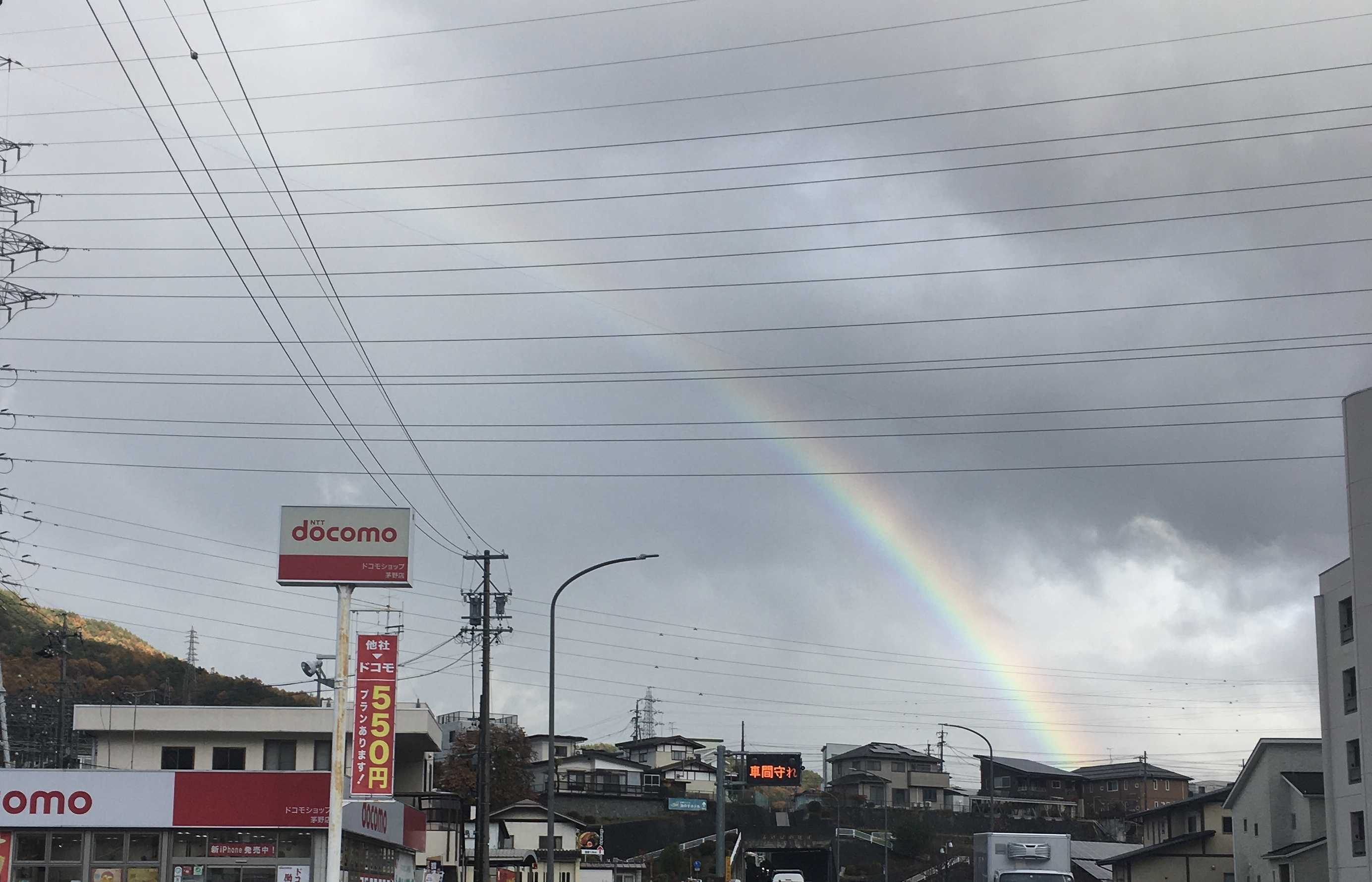 画像は先日諏訪へ買い物に出かけた時に撮ったものです。真っ暗な空に突然現れた虹、太陽が雲に隠れていたので不思議でした。もう一つ不思議なのは、虹はいつも円を描いています。何故でしょう? 太陽光が射す角度に対して42度上空に出ると説明されていますが、何故円を描いているのかよく分かりません。私には、天蓋と関係があるように思えてならない。😂