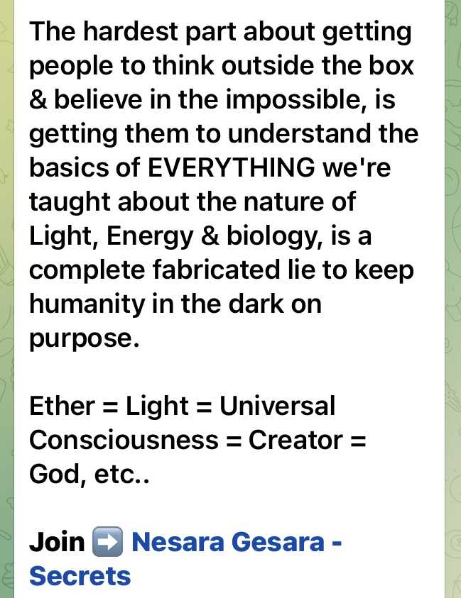 人々に既成概念にとらわれずに考えさせ、不可能なことを信じてもらう上で最も難しいのは、光、エネルギー、生物学の本質についてで、私たちが教えられて来たすべての基本は、人類を暗闇に留めておくための完全にでっち上げられた嘘であることを理解してください。