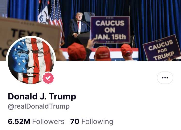 その前に、こちら👇がトランプ大統領のTruth Socialアカウントの表紙です。今朝からこのCAUCUS(党員集会)の写真に変わりました。アイコンのお顔は変わらずマグショットのトランプ大統領、怖いお顔されてます。