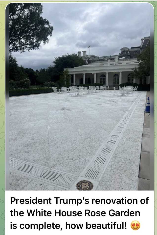 トランプ大統領のホワイトハウス ローズガーデンのリノベーションが完了した。なんて美しんだ!