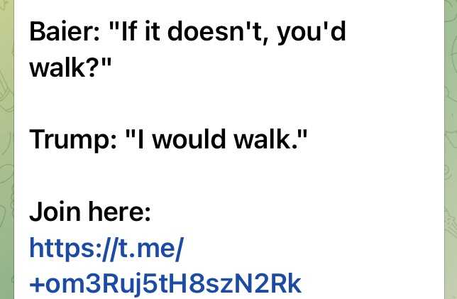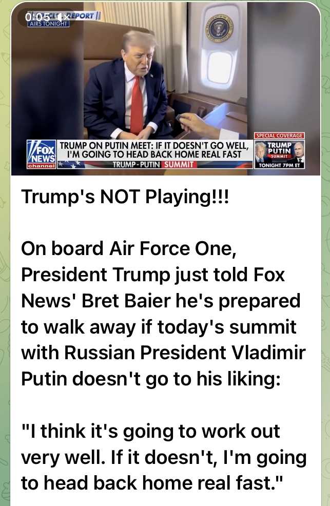 エアフォースワンの中で、トランプ大統領はフォックスニュースのBret・Baierに、もしロシアのブラディミール・プーチンとの会談が気に入るものでなかったら、歩いて帰る用意がある、と伝えた: