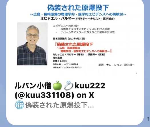 ➡️ ルパン小僧さんのX動画「偽装された原爆投下」へは