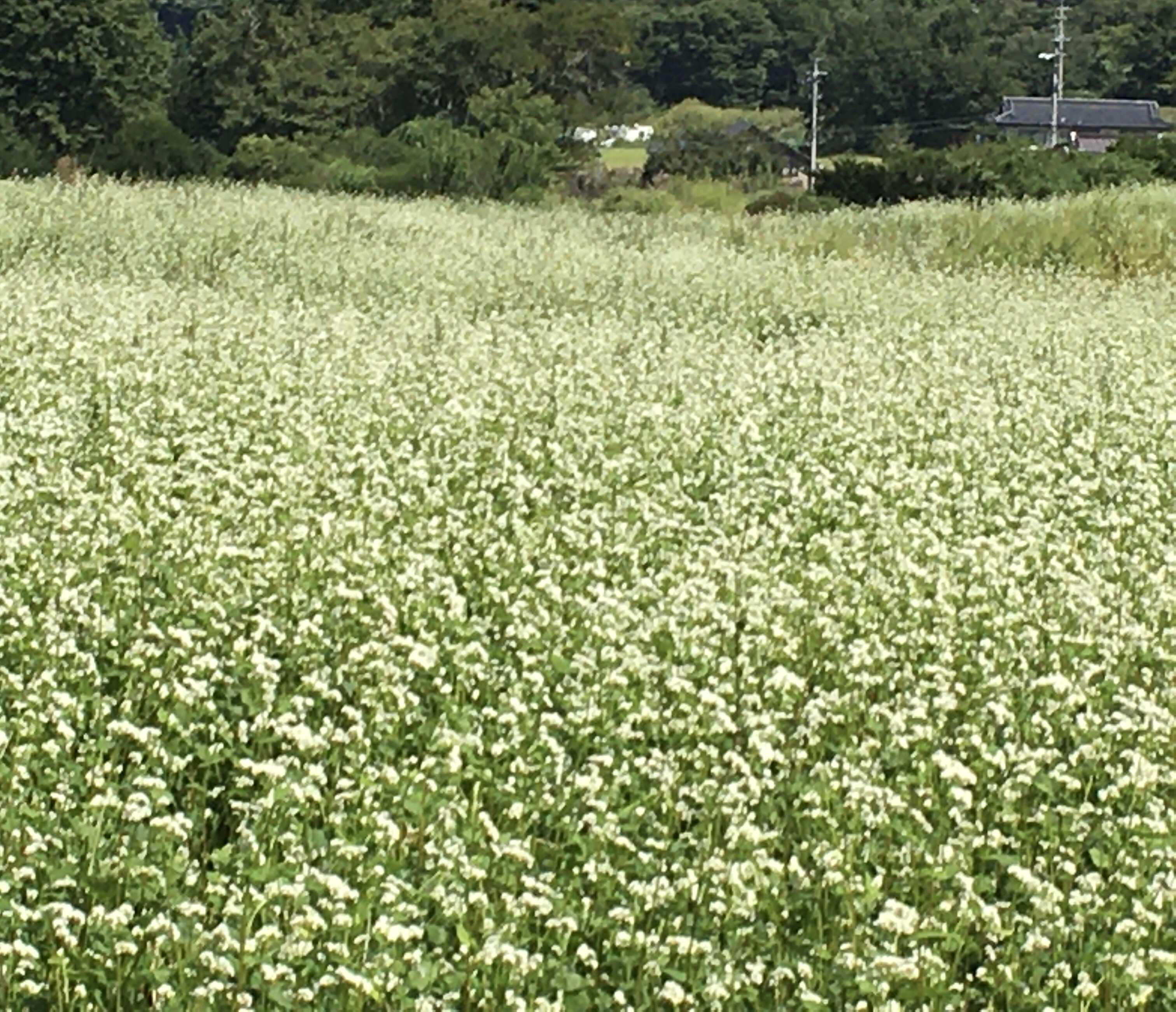 車で走ると畑は、稲の黄金色と蕎麦の花の白に彩られてそれは綺麗です。