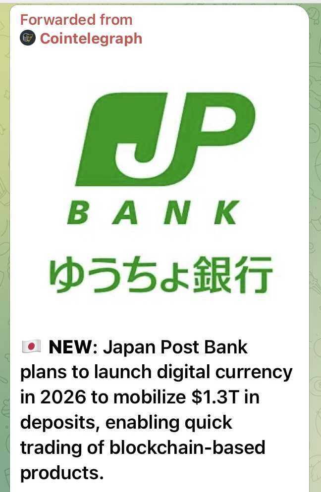 日本ゆうちょ銀行は2026年にデジタル通貨取引を開始します、そして、$1.3T(1兆3千億ドル)の預金を使い、ブロックチェーンベースの商品の迅速な取引を可能にします。