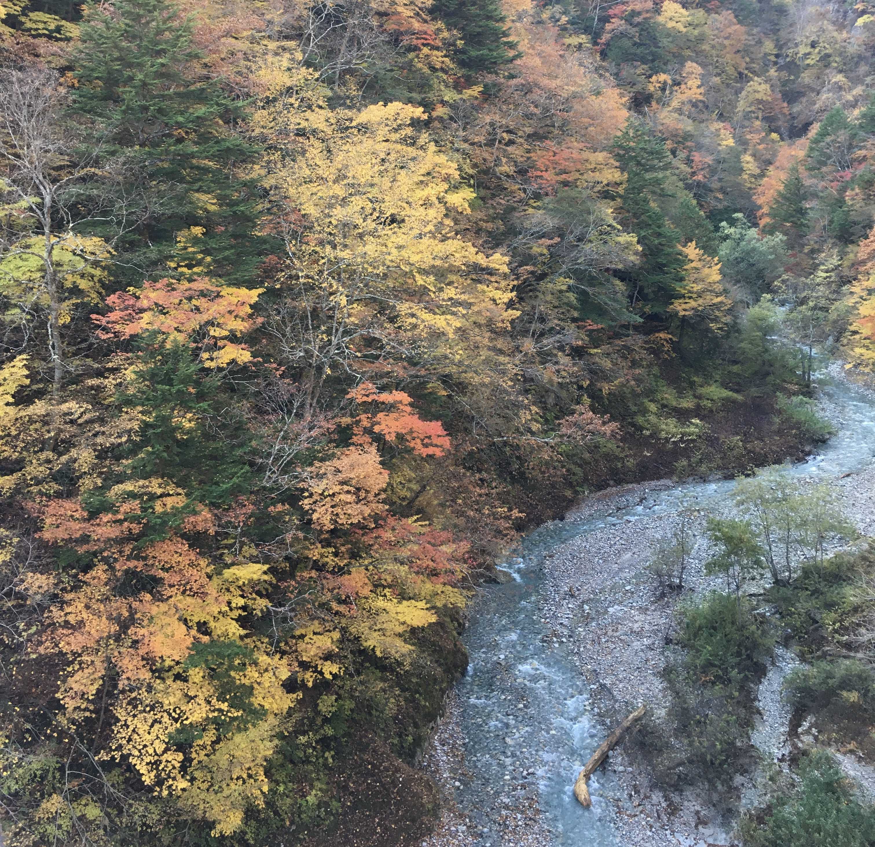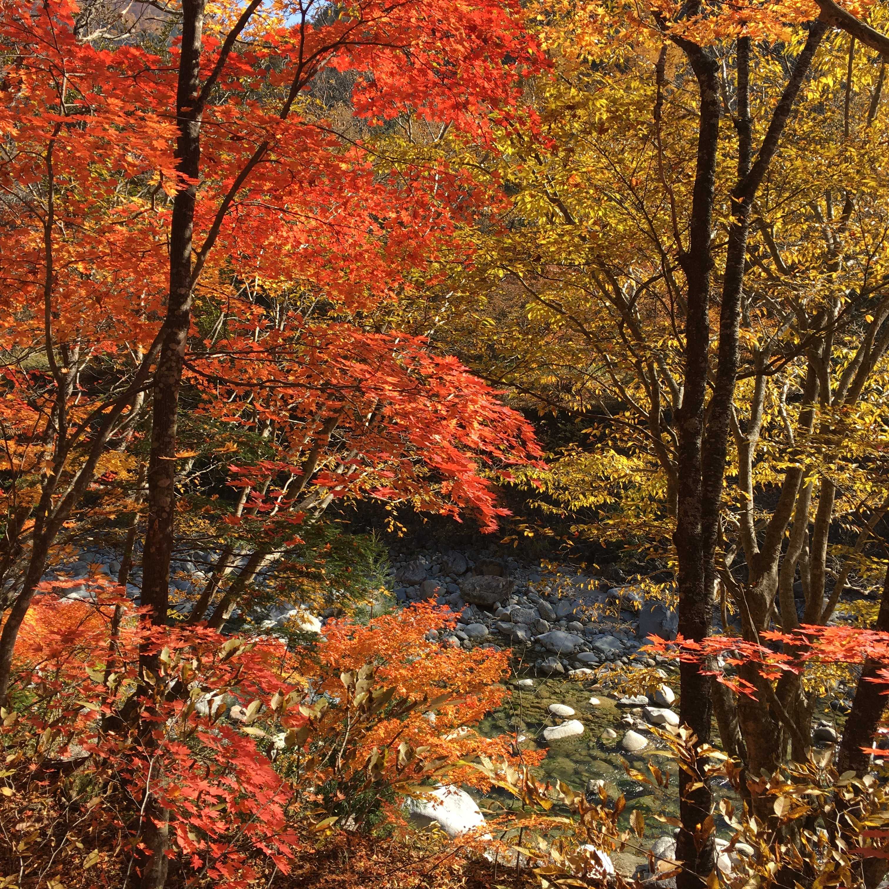 先日、以前から行きたいと思っていた高瀬渓谷に紅葉を見に行きました。ピークは少し過ぎていましたが、素晴らしい紅葉に感激ひとしおでした。何よりも山々に囲まれたその景色に感動でした。やはり私は山が大好きです。