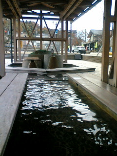 片山津温泉の足湯に行ってきました 山代温泉の足湯と比べると大きくて 足を入れる所が深め、そのためお湯の温度がややぬるめです(と言うか、山代温泉の方が熱過ぎるのですが・・)