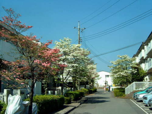 この画像は2007年春のことで、花水木は樹勢が弱い花木で、数本は枯れてしまって姿を消してしまっています。